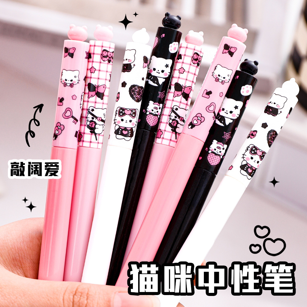 Bút bi gel xoay hình mèo đen hồng 3,7k/c (lố 12)