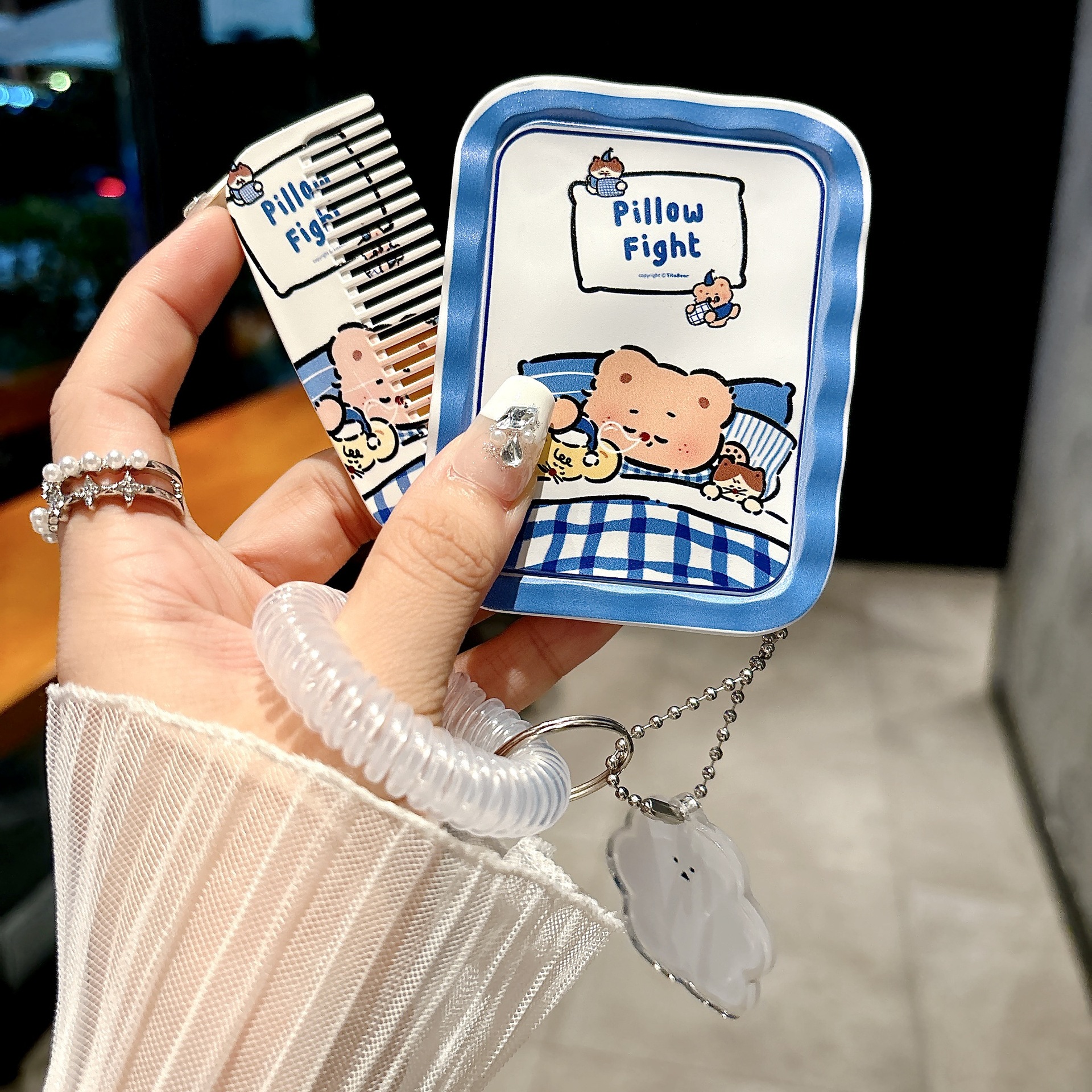 Set gương lược mini cao cấp mẫuhông kèm móc khóaset 18,1k/c (lố 4)