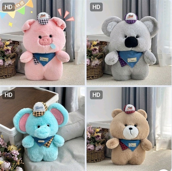 Gấu bông thú đội mũ đeo khăn 35cm 96,3k/c (lố 10)