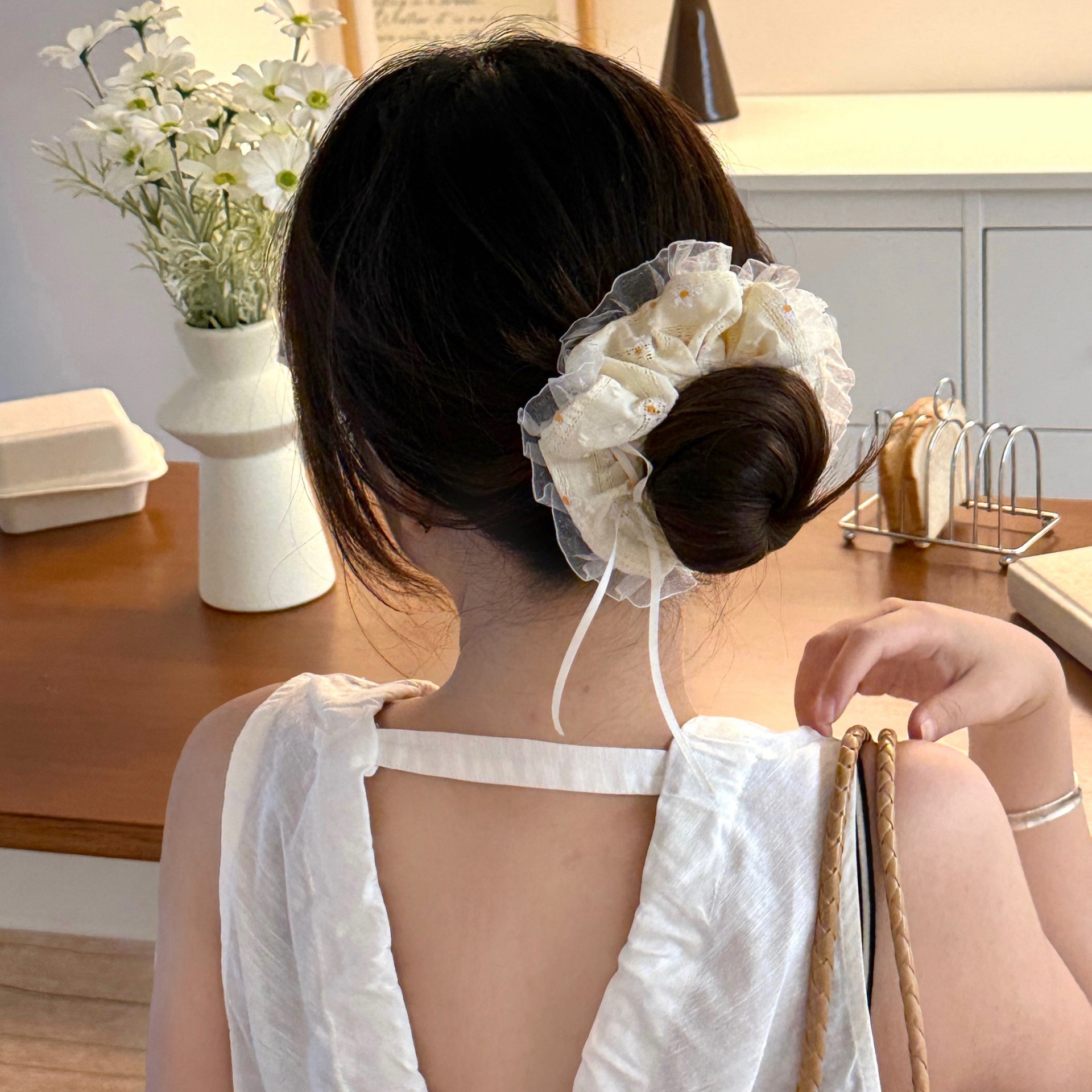 Scrunchies hoa cúc vàng dáng tròn 14,1k/c (lố 6)